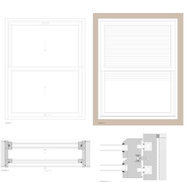 Ziel ist die Transformation der Prinzipien eines Kastenfensters an aktuelle Anforderungen, Konstruktions- und Ausführungsmöglichkeiten. Im ersten Schritt soll eine Analyse der historischen Entwicklung von Kastenfenstern und deren Kontext erfolgen. Erarbeiten Sie sich dabei die verschiedenen Konstruktionen und deren spezifische Eigenschaften und stellen Sie die Vor- und Nachteile dar. Im zweiten Schritt sollen diese besonderen